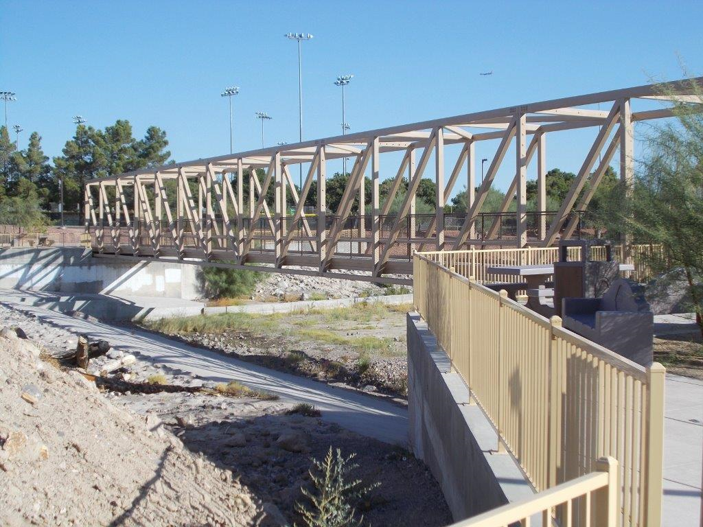 This Project consisted of installation of a Pedestrian Bridge over the existing wash, Construction of a BMX Facility, Dog Park, Trails & Pathways, Irrigation, Landscaping, Signage, Trail Lighting, Storm Drain Modifications, Improvements to existing Structures and other improvements within the Park.